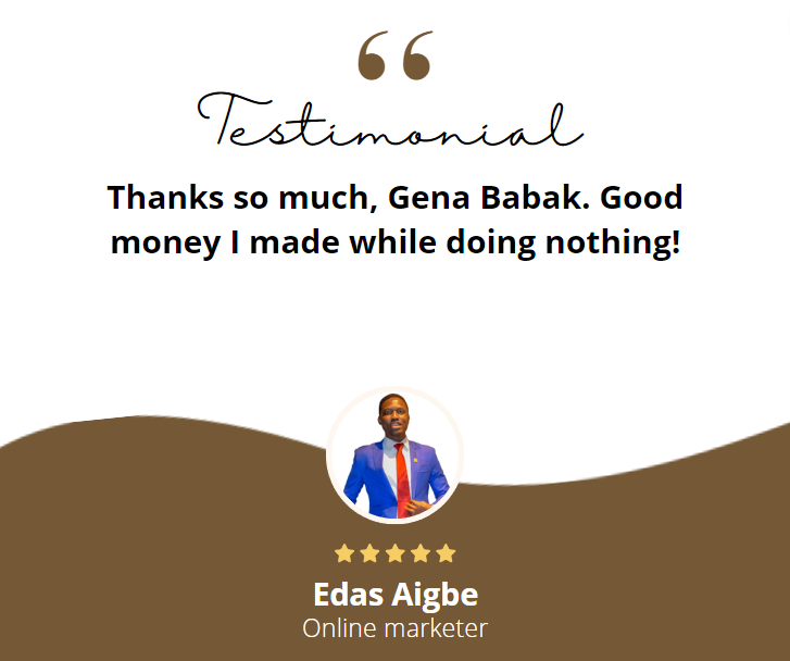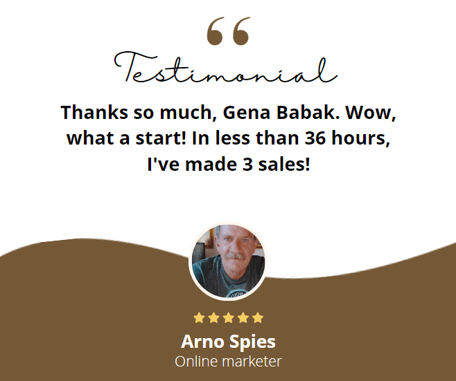 *Earnings and income representations made by Gena Babak, Gena's agency, and Gena's agency and their advertisers/sponsors (collectively, "Gena's agency") are aspirational statements only of your earnings potential. These results are not typical and results will vary. The results on this page are OUR results and from years of testing. We can in NO way guarantee you will get similar results.